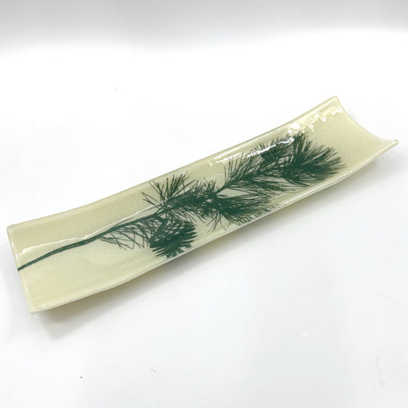 Pine Bough 17" Fused Glass Channel Platter * Made to Order