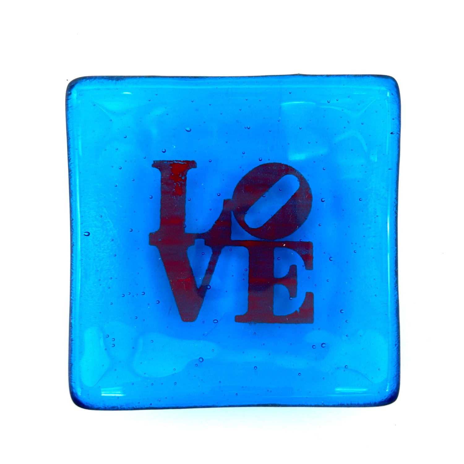 This small dish features the Robert Indiana LOVE sculpture design. Multi-functional little art pieces make great gifts, and are a great size (and price)! This design is perfect for LOVErs of art and love!