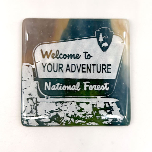 Welcome to Your Adventure National Forest Fused Glass 4" Single Coaster