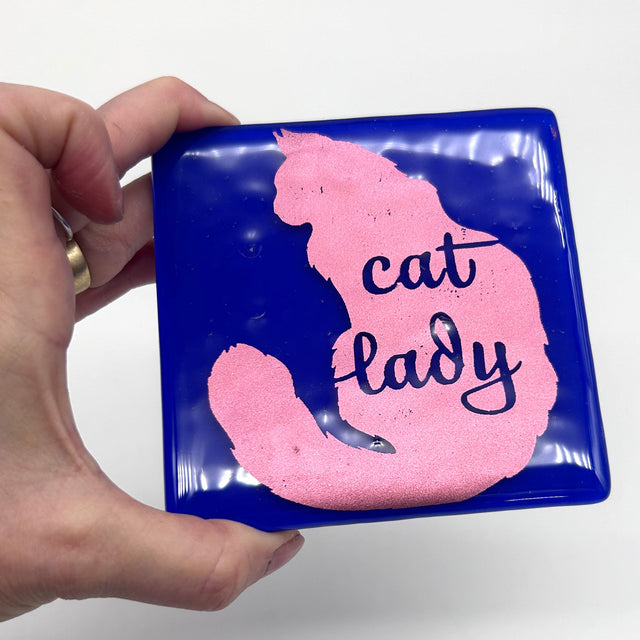 Cat Lady Handmade 4" Single Fused Glass Coaster
