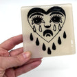 Crying Heart Tattoo 4" Handmade Fused Glass Bar Coaster
