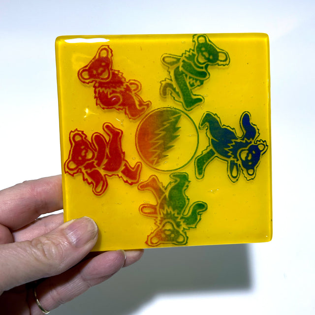 Deadhead Dancing Bears Fused Glass 4" Single Coaster