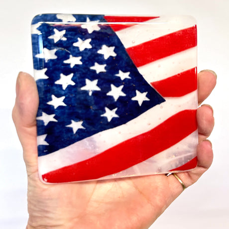 $ 2200Unit price /UnavailableUSA American Flag Fused Glass 4" Single Coaster