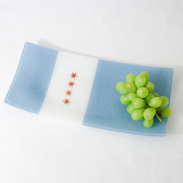 Chicago Flag Fused Glass 15" Long Platter