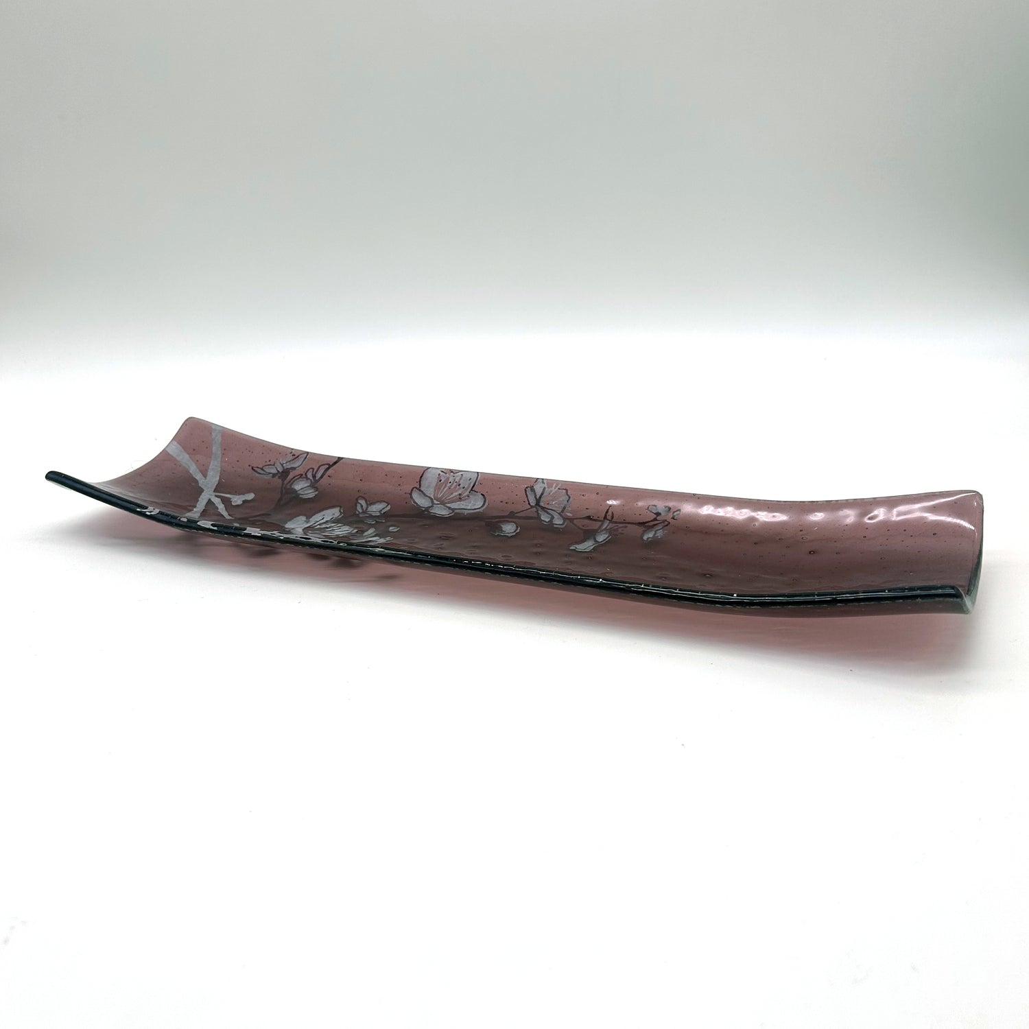 Cherry Blossom 17" Fused Glass Channel Platter * Made to Order