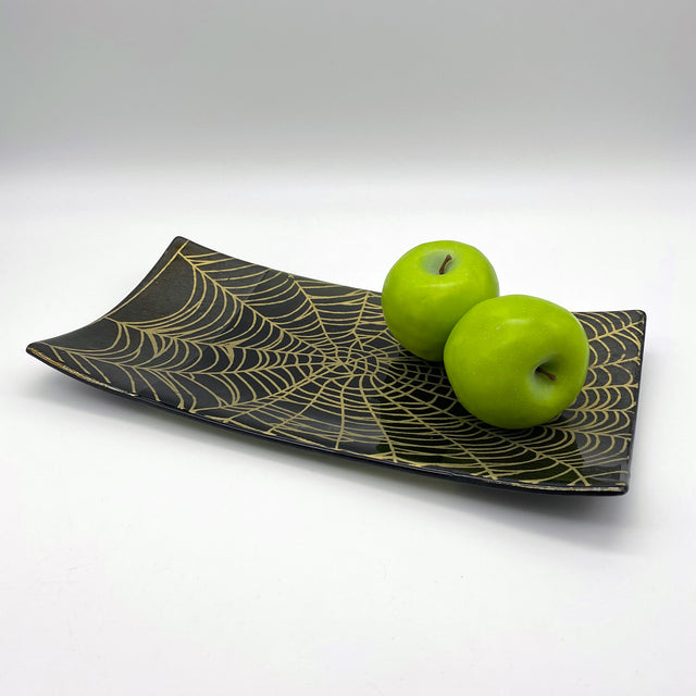 Mystical Spider Web 15" Long Fused Glass Serving Platter